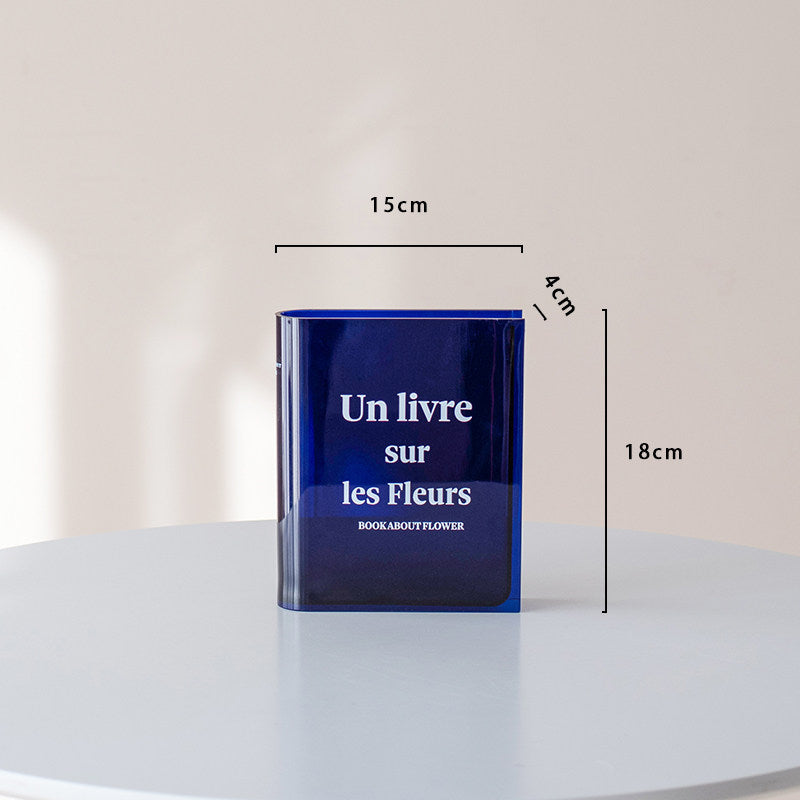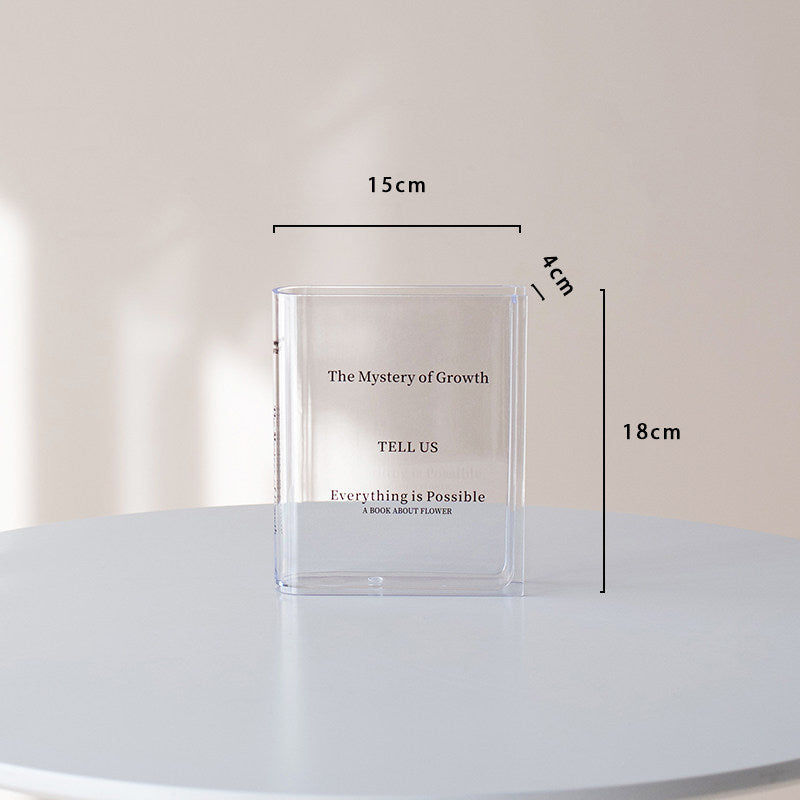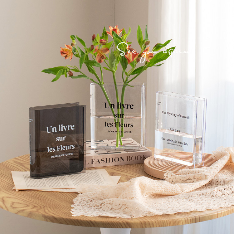 Unique Design: Creative book-shaped acrylic vase with modern aesthetic appeal